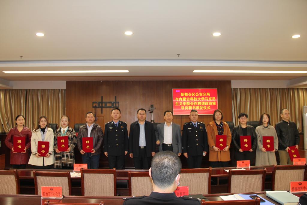 为进一步把习近平新时代中国特色社会主义思想和党的政治理论送到昆区公安分局基层支部,帮助基层公安干警筑牢思想之基、塑造精神之魂,3月12日上午,昆区公安分局举行聘任仪式,聘请公司34名党员教师担任昆区公安分局各基层党支部的思想政治辅导员。公司党总支书记刘玉明、党总支副书记副经理杨永旺和8名党员教师代表以及昆区公安分局各党支部负责人参加了此次聘任仪式。