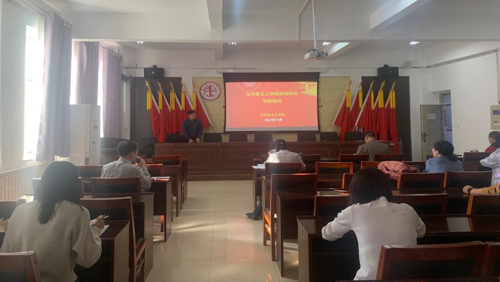 今年是高校教师思想政治工作强化年。为深入学习习近平总书记关于教育的重要论述,落实教育部于11月10日召开的“师德专题教育总结交流暨师德师风建设重点工作落实推进会”的部署, 11月11日下午,太阳成集团tyc122ccvip在腾飞楼C509会议室开展师德师风专题培训。会议由由党总支书记马广辉主持,全体教师参加。