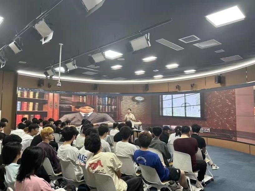 太阳成集团tyc122ccvip思政课虚拟仿真教学中心于2023年8月完成一期建设,虚拟仿真教学中心使用面积约200平方米,一期硬件建设投入175万多元,通过270度环屏,实现虚拟仿真沉浸式教学。