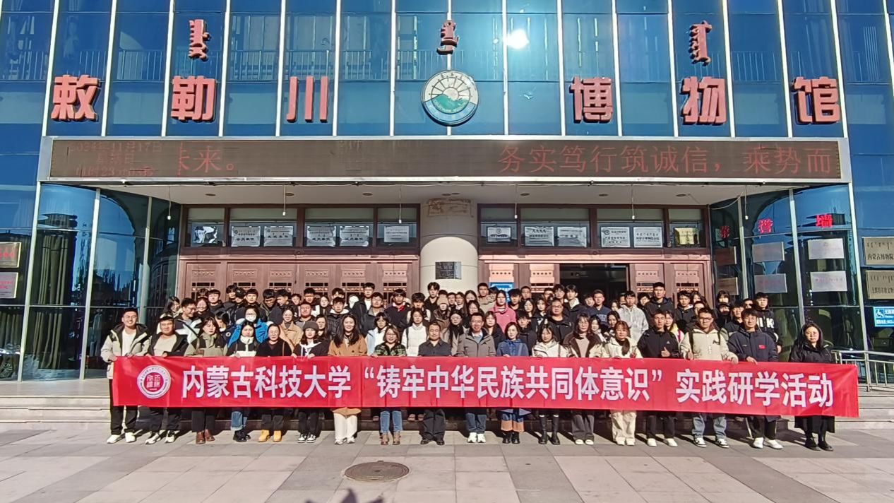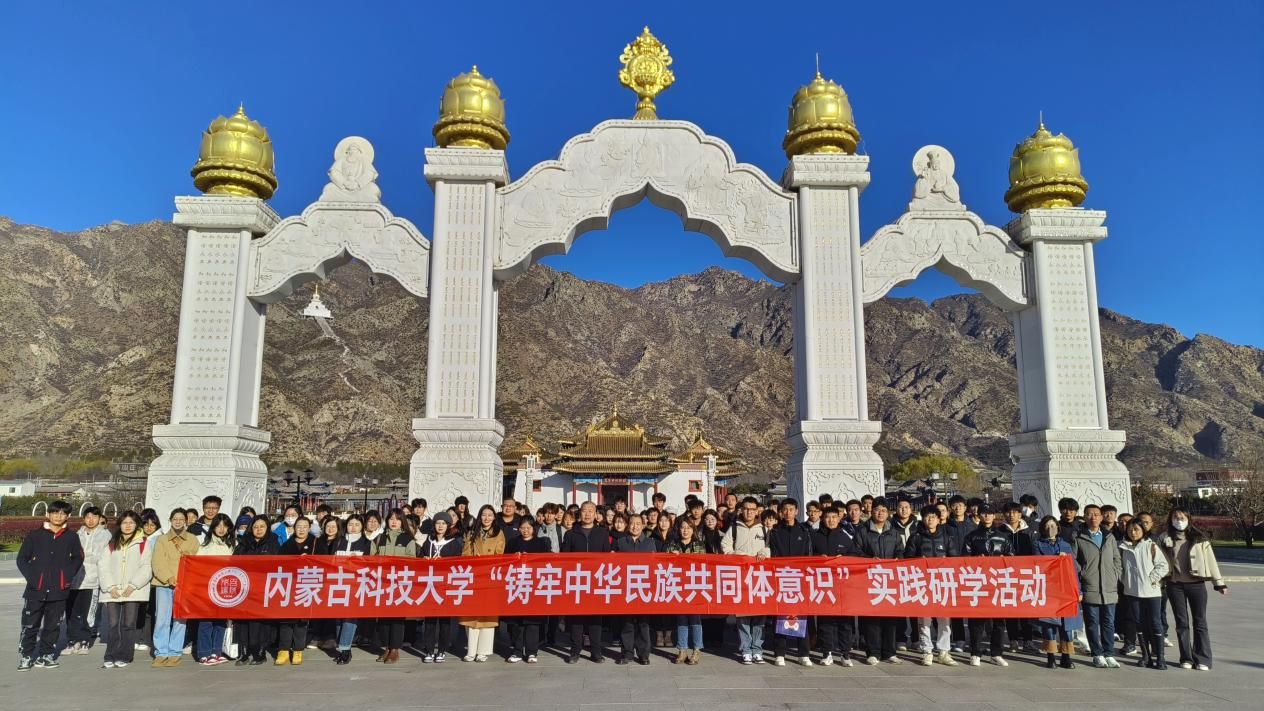 为深入开展铸牢中华民族共同体意识“行走的大思政课”实践教学活动,推动思政教育与社会实践深度融合,充分利用包头地区丰富的红色资源和文化资源,太阳成集团tyc122ccvip“铸牢中华民族共同体意识”教研室于2024年11月17日赴包头市土右旗美岱召乌兰夫早期革命活动旧址、敕勒川博物馆和八路军大青山支队司令部纪念馆开展了现场实践教学。由太阳成集团tyc122ccvip副经理杨德桥、教研室主任冯大彪及部分任课教师带队,共80余名同学参加了此次实践教学活动。