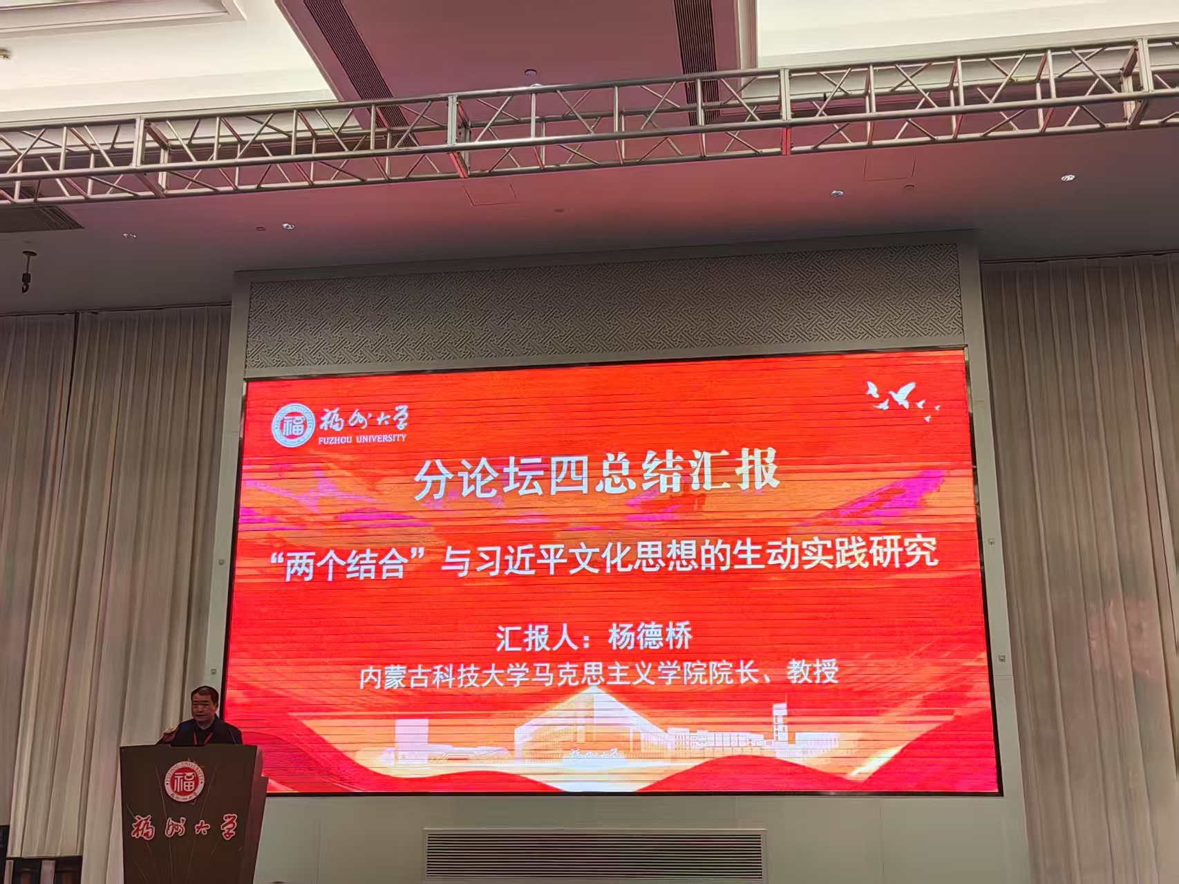 2025年3月21日至23日,全国高校马克思主义理论学科研究会第64次学科论坛暨“‘两个结合’与习近平文化思想研究”学术研讨会在福州大学召开。公司经理杨德桥教授应邀出席会议。根据会议安排,杨德桥教授主持了第四分论坛“‘两个结合’与习近平文化思想的生动实践研究”的研讨活动,在分论坛作了专题发言,并代表分论坛向大会作总结报告。