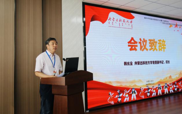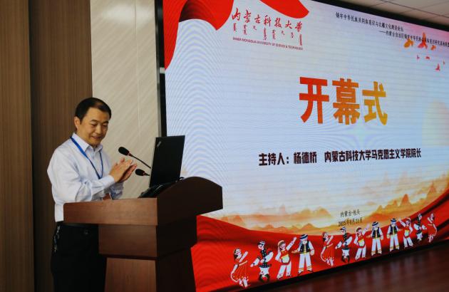 内蒙古师范大学党委副书记、自治区铸牢中华民族共同体意识研究基地联盟秘书长斯钦代表联盟致辞。他希望充分发挥研究基地联盟的凝聚效应,整合多方研究力量,让理论阐释精准落地。