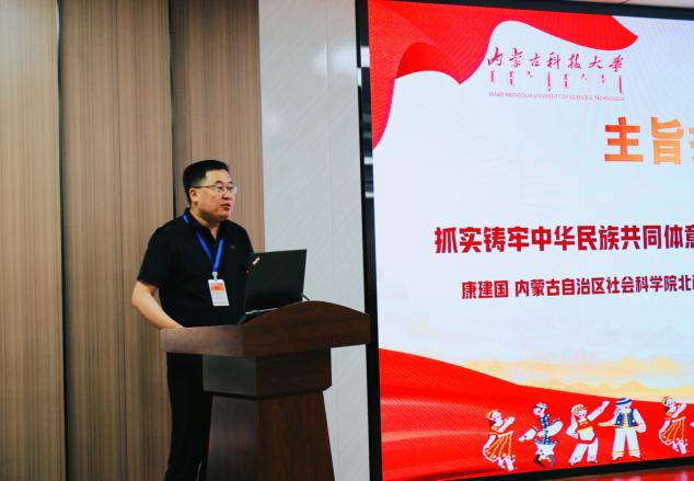 内蒙古自治区社会科公司北疆文化研究中心主任、《北疆文化研究》主编康建国作了“抓实铸牢中华民族共同体意识主线,做好北疆文化建设工作”的报告,结合内蒙古地域文化特色,阐释了以铸牢中华民族共同体意识引领北疆文化建设高质量发展的实践思路。