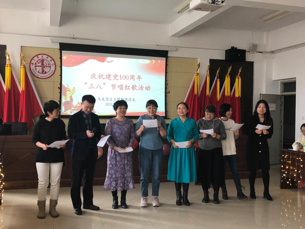 教职工们热情如火,红歌唱响半边天。各系部分别演唱了《没有共产党就没有新中国》、《我和我的祖国》、《学习雷锋好榜样》和《美丽的草原我的家》,杨永旺书记献唱了《北京的金山上》,焦刚等老师也分别演唱了《旅行》、《火红的萨日朗》等歌曲,大家用歌声赞颂中国共产党,传递出爱党爱国正能量。