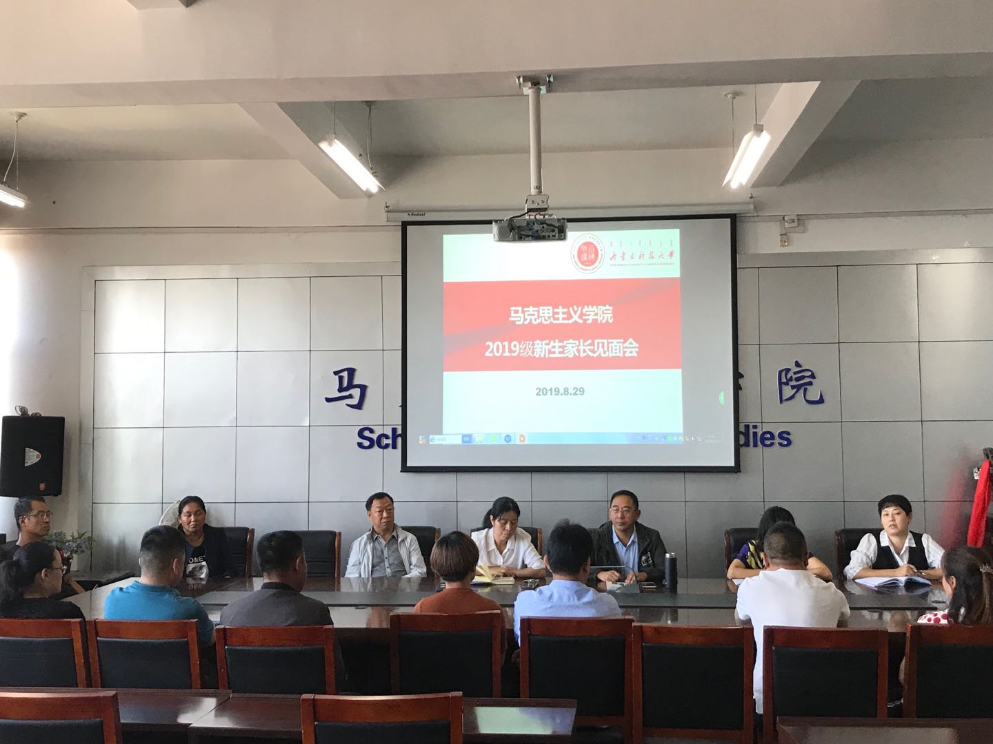 8月29日上午9:00,太阳成集团tyc122ccvip在腾飞楼C517会议室举办了2019级新生家长见面会。公司副经理许丽丽、党总支副书记杨永旺、教授委员会委员雎密太、教授委员会委员刘佳、学工办主任陈伟、新生班主任王海朋,以及20余名新生家长共同参加了见面会。公司党总支副书记杨永旺主持见面会。