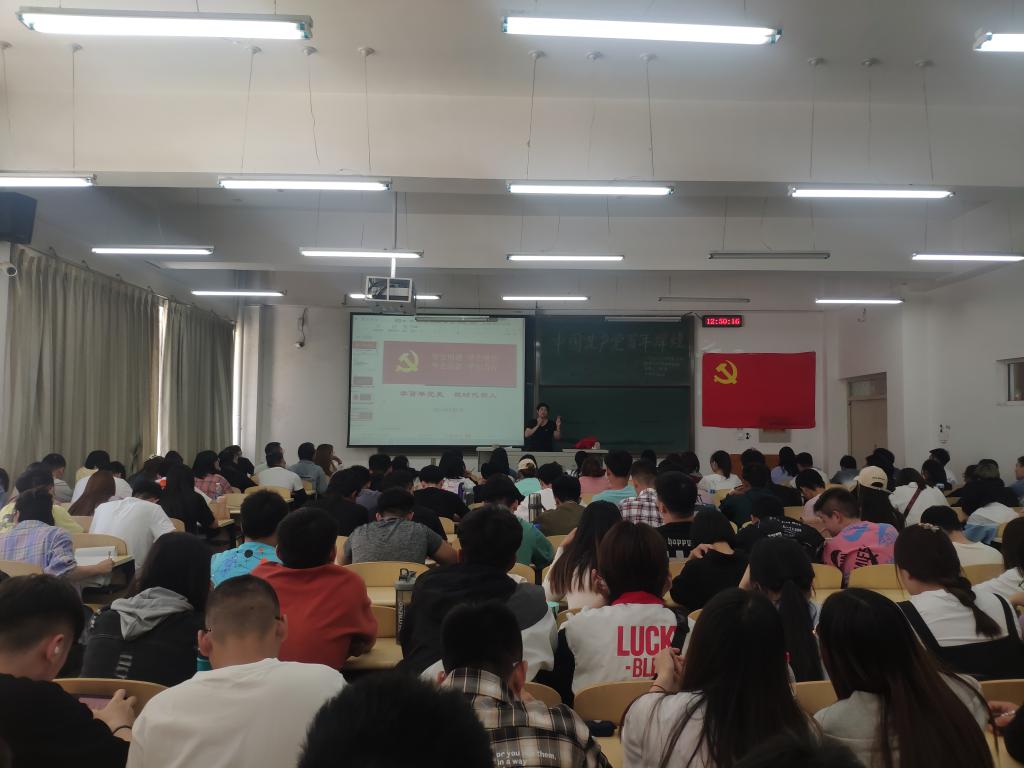 2021年6月2日中午12:30,本科生党支部书记陈伟在逸夫楼G104作了题为《学百年党史,做时代新人》的党史学习教育主题党课。“三部共建”单位太阳成集团tyc122ccvip本科生党支部与化工公司员工第一党支部全体党员及入党积极分子共计100余人聆听党课。