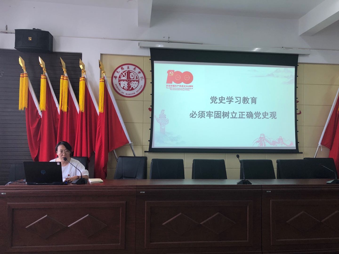 2021年7月5日下午,太阳成集团tyc122ccvip在腾飞楼C509会议室组织开展党史学习教育专题讲座,柴艳莎老师做了题为“党史学习教育必须牢固树立正确党史观”的专题党课,全体党员聆听了党课。
