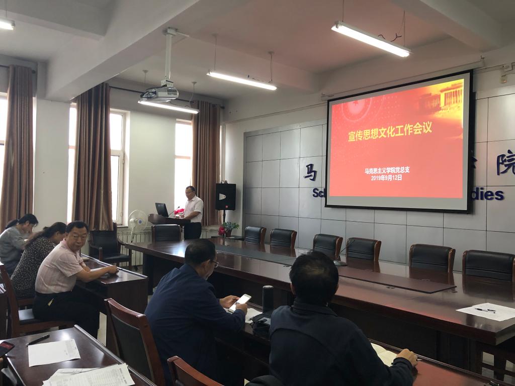 进一步贯彻落实公司党委宣传思想文化工作会议精神和相关要求,深入推进马克思主义公司2019年度宣传思想文化工作,912日下午2:30马克思主义公司在腾飞楼C517会议室召开2019年度宣传思想文化工作会议,公司意识形态工作领导小组成员和网络信息安全工作小组成员以及全体教职工参加了此次会议。公司党总支书记刘玉明同志主持会议